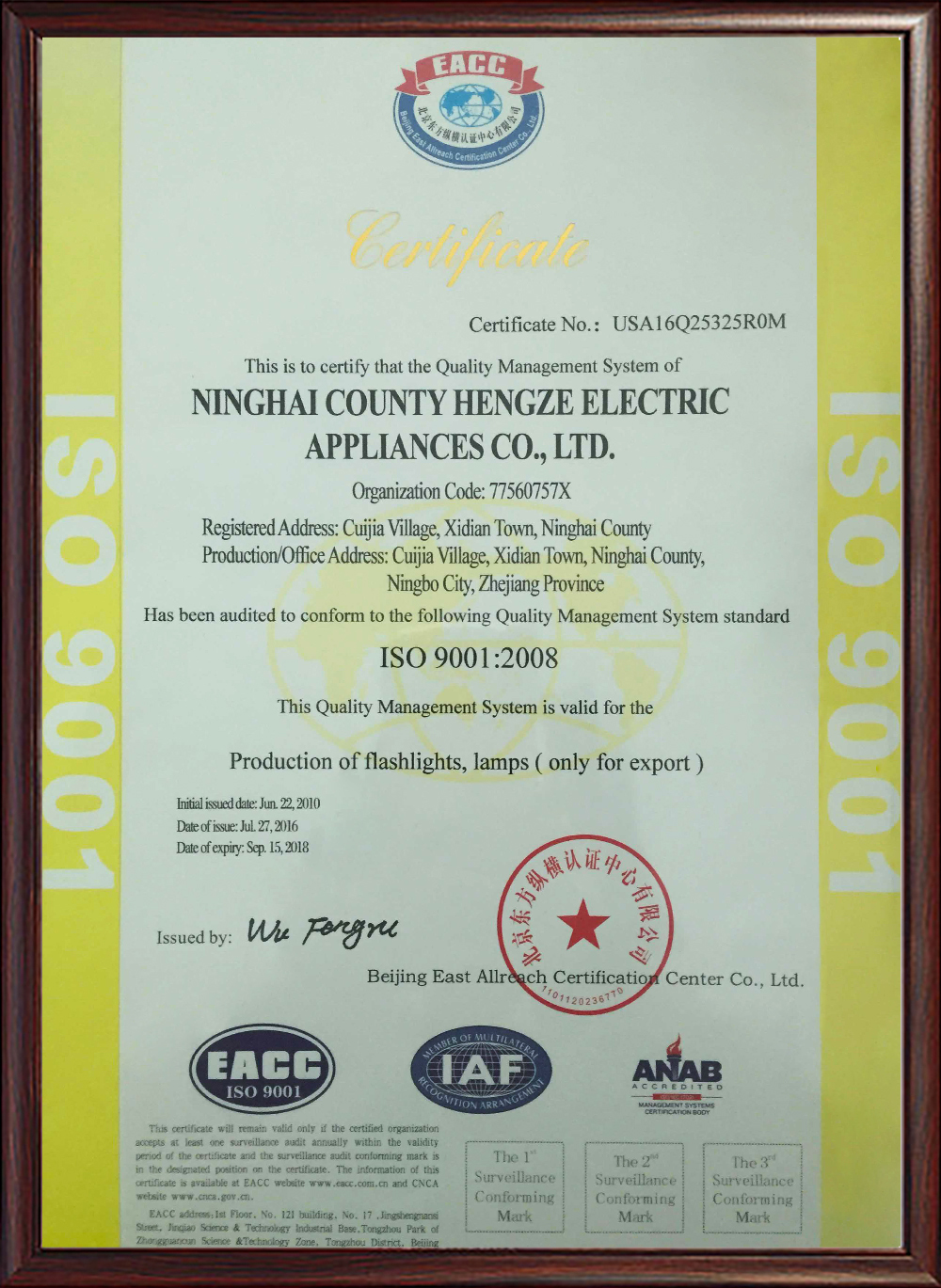 寧??h恒澤電器有限公司(恒澤電器)成立于1993年,位于魚米之鄉的浙江省寧海西店鎮。此鎮南北交通發達,物流方便快捷。同時此地也是全國的手電筒、文具及其配套產品的生產基地之一。其優越的地理環境、規?;漠a品生產和便利的配套供應鏈為恒澤電器的穩步成長提供了優越的條件。